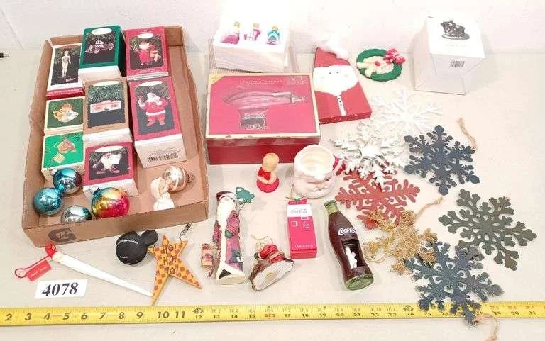 4078 Hallmark Christmas ornaments, Lennox Santa's Voyage Christmas ornament, other Christmas ornaments and decorations