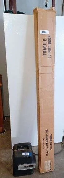 4071 Bell and Howell Lumina 12 movie projector and screen