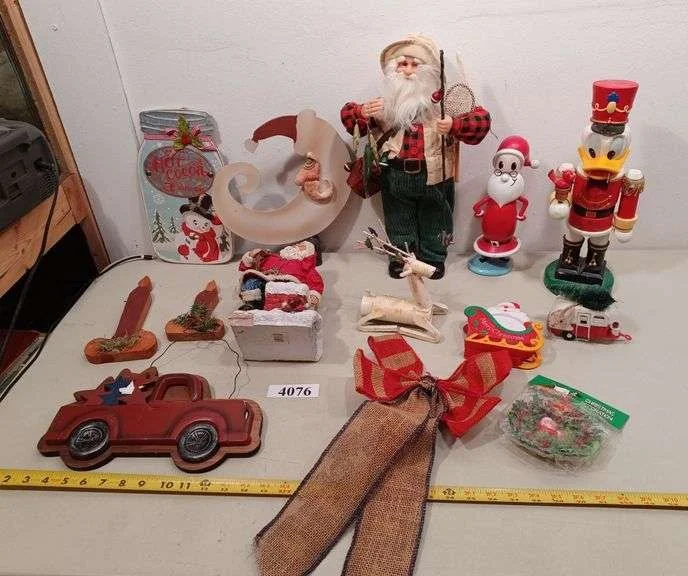 4076 Christmas decorations including Donald Duck nutcracker, Santa figurines, Etc