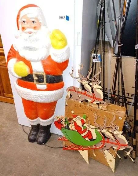 4083 Styrofoam Santa, plastic yard Santa and reindeer