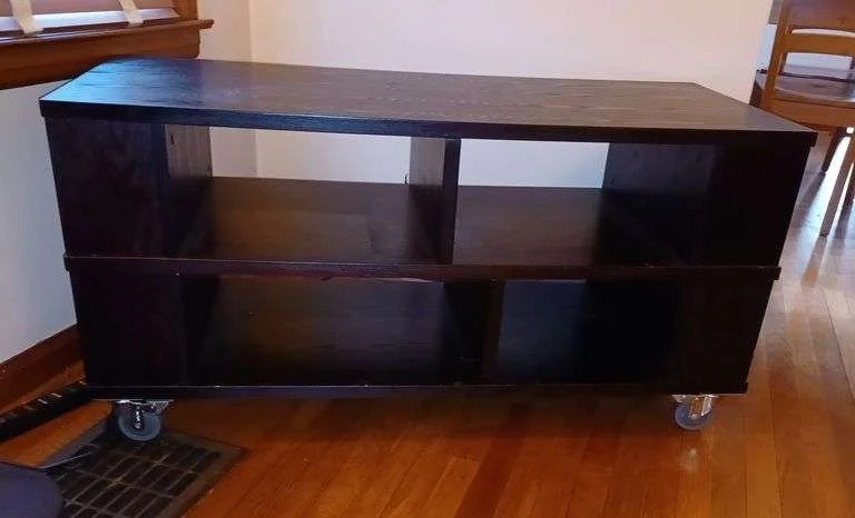 9021 Black rolling TV stand with locking wheels
