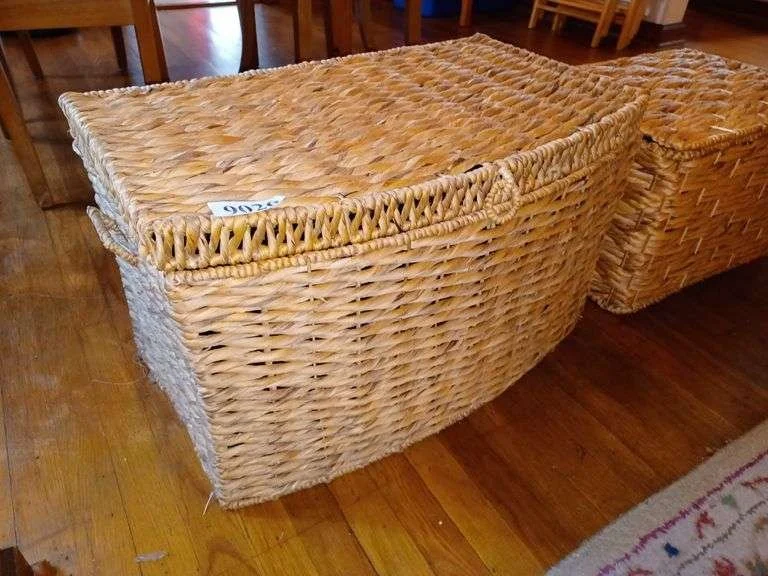 9026 Two small rush trunks/hampers