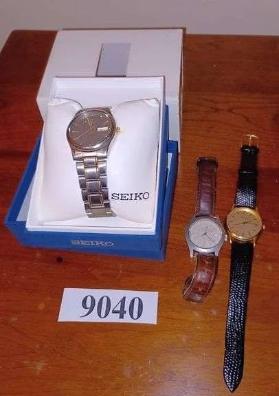 9040 Seiko, Eddie bauer, and Caravelle Wrist watches. All need batteries.