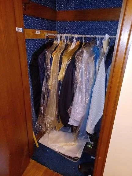 9052 Contents of closet including suits, Sports coats, dress shirts, dress pants, Etc