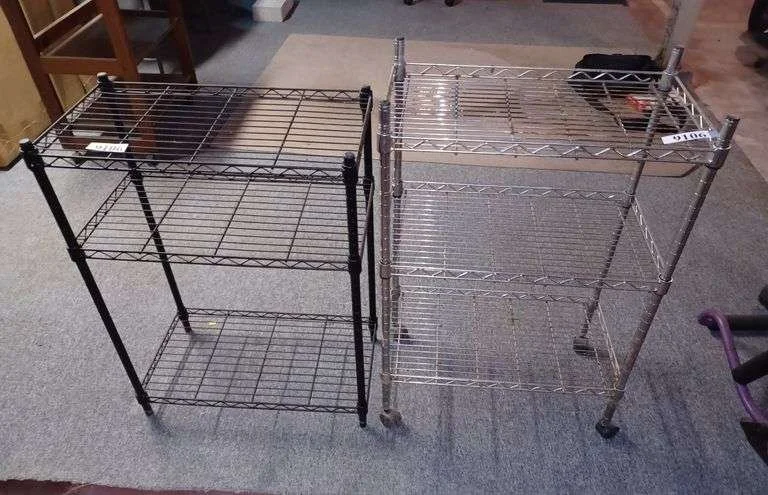 9106 Chrome wire shelf on wheels, black wire shelf