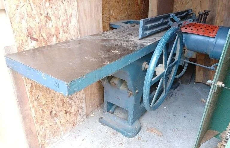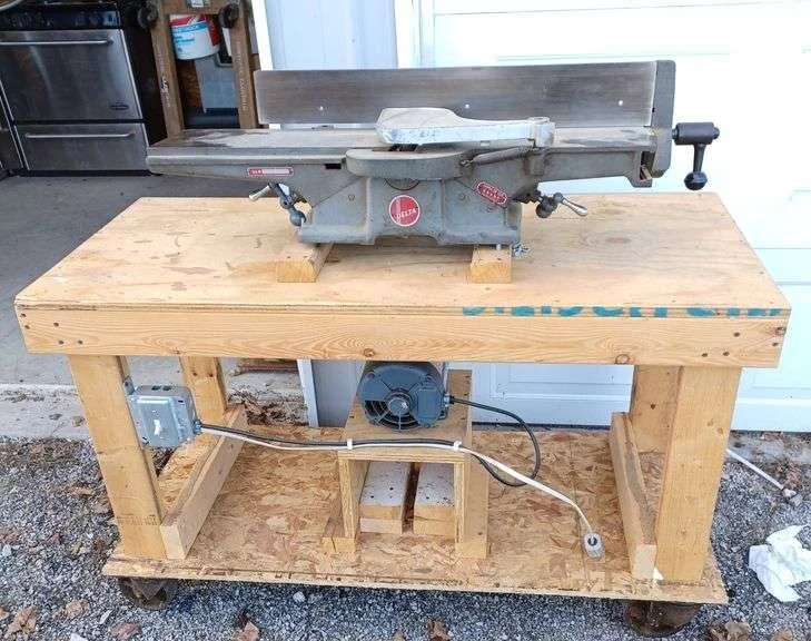 3007 Cast iron planer / jointer on handmade rolling wooden table with electric motor
