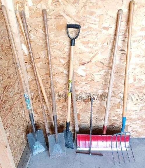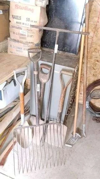 3029 Pitchfork, shovels, scraper, hoes, other yard tools