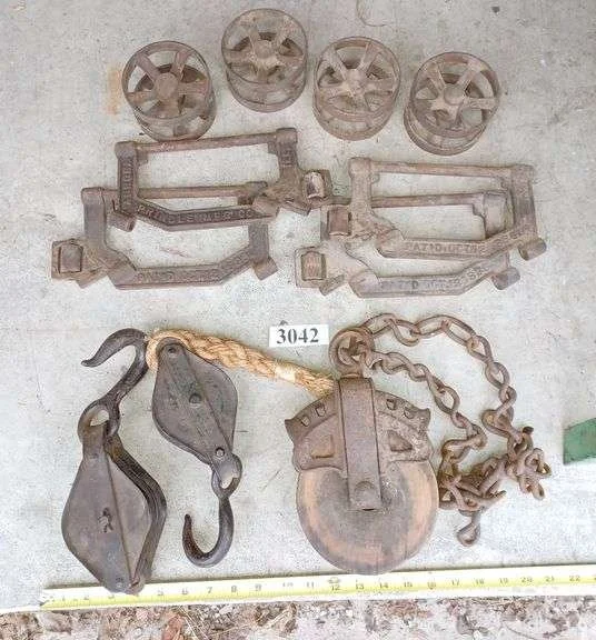 3042 Antique wood pulley, single and double pulleys, Antique Hardware and wheels.