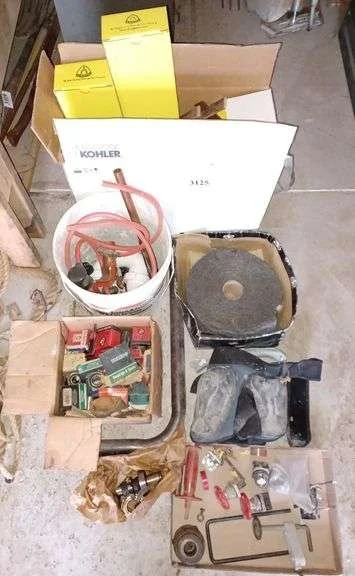 3114 Propane burner, leather belt, hardware, electrical items, plumbing, Etc