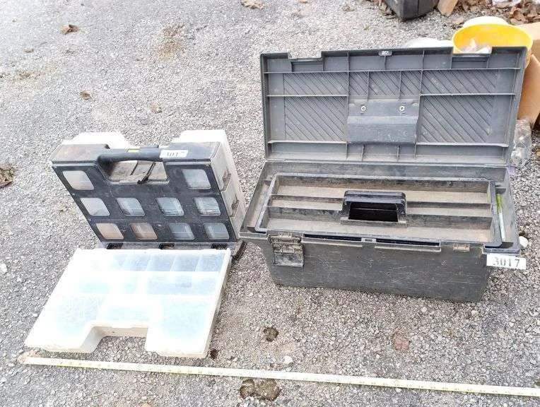 3017 Stanley portable hardware organizer full of hardware, Rubbermaid tool box with tray
