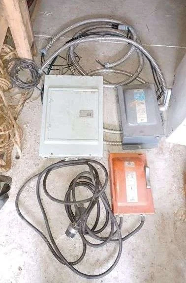 3079 Large box of electrical wiring, vintage electrical boxes, conduit, Etc