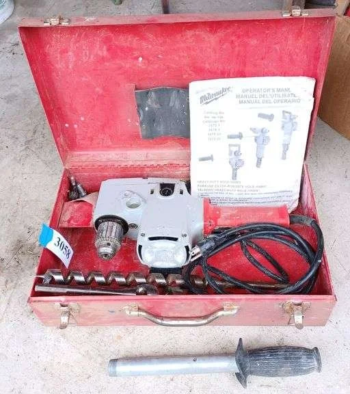 3058 Milwaukee Hole Hawg right angle drill in case with manual and bits