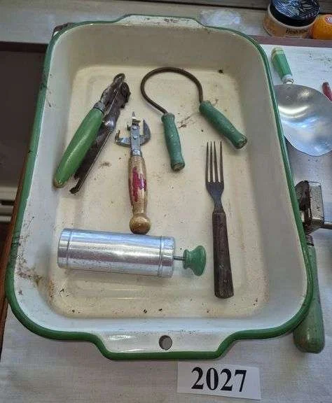 2027 Kitchen primitives, graniteware pan