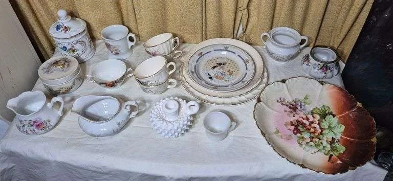 2095 Royal porcelain Bavaria KM Germany Fandarbeit China tea set, two Meito China hand-painted partial place settings