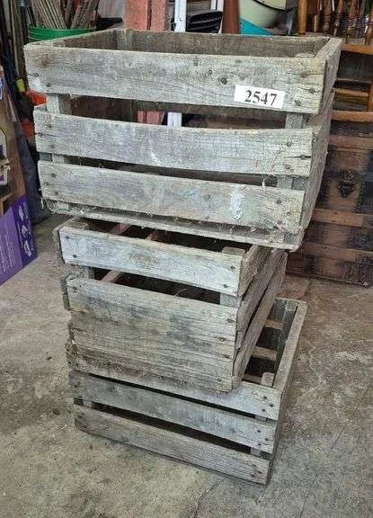 2689 Wood crate, metal bottle carrier, milk bottle, juice bottle