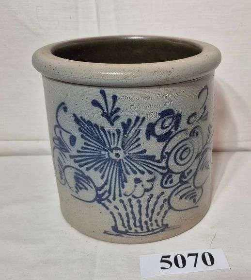 5070 Contemporary blue decorated stoneware crock