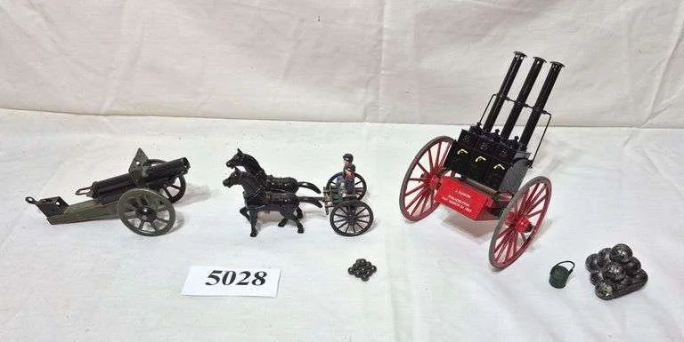 5028 Metal horse and carriage, metal toy cannon, cannonballs, plastic model Civil War Coffee wagon