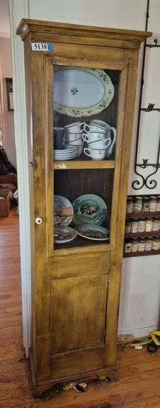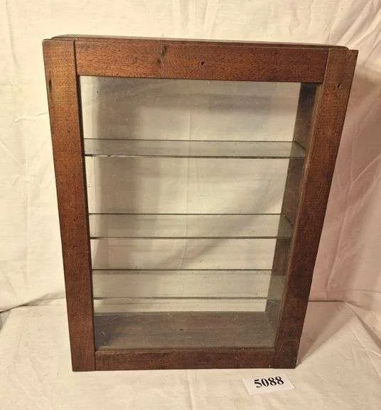 5088 Vintage display case with glass door and back, glass shelves