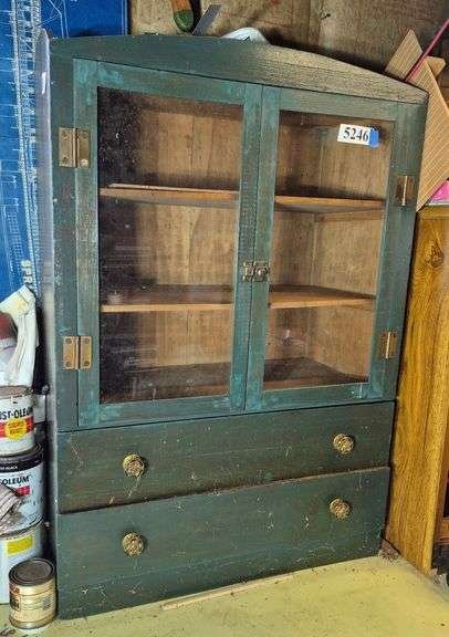 5246 Green Cabinet with two glass doors and two drawers