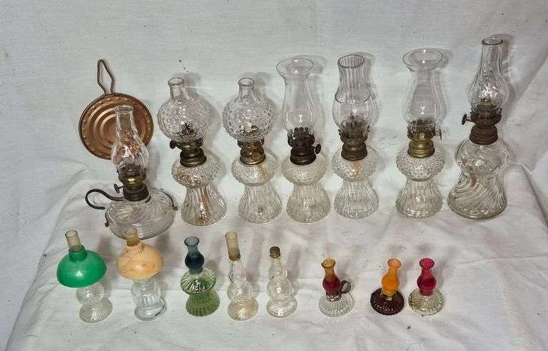 5287 Miniature oil lamps, miniature oil lamp chimneys