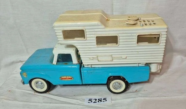 5285 Vintage metal toy Ford 250 camper special pickup with plastic camper top with built-in radio