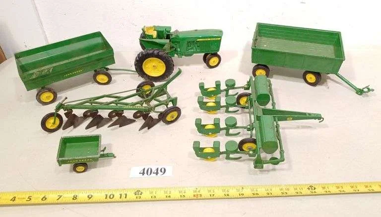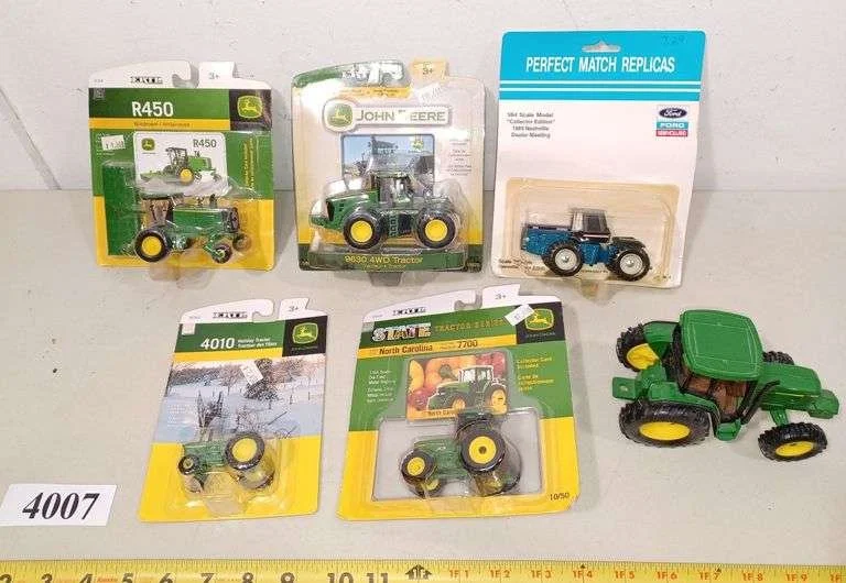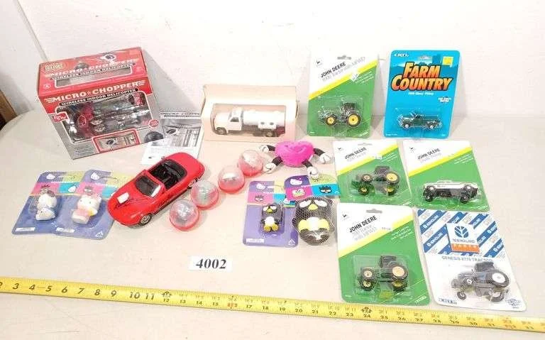 4002 Ertl John Deere tractors and pickup trucks, micro helicopter, other miscellaneous toys