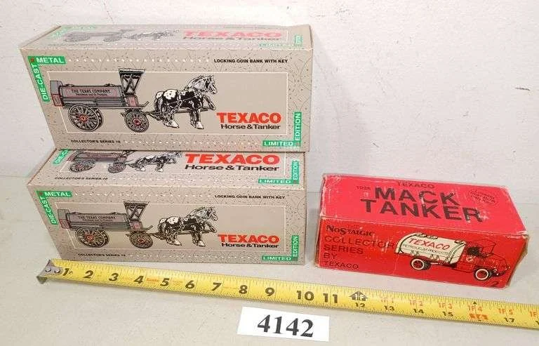 4142 (3) ERTL diecast Texaco collector truck and horse & tanker banks in boxes