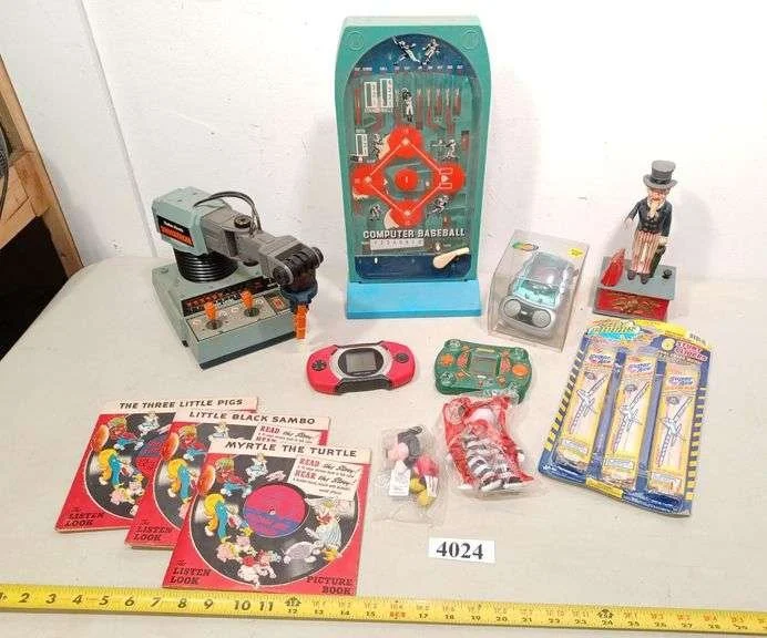 4024 RadioShack Armitron, computer baseball game, other toys, picture books with records
