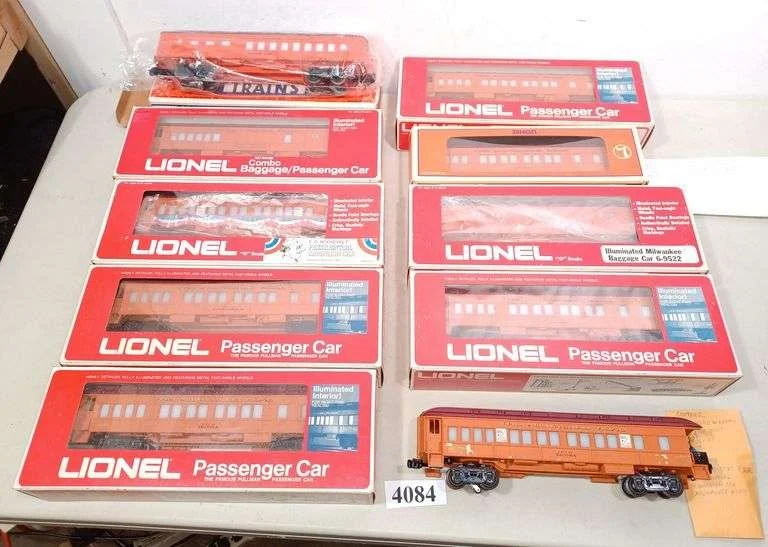 4084 (10) Lionel Milwaukee Road train cars, nine in boxes
