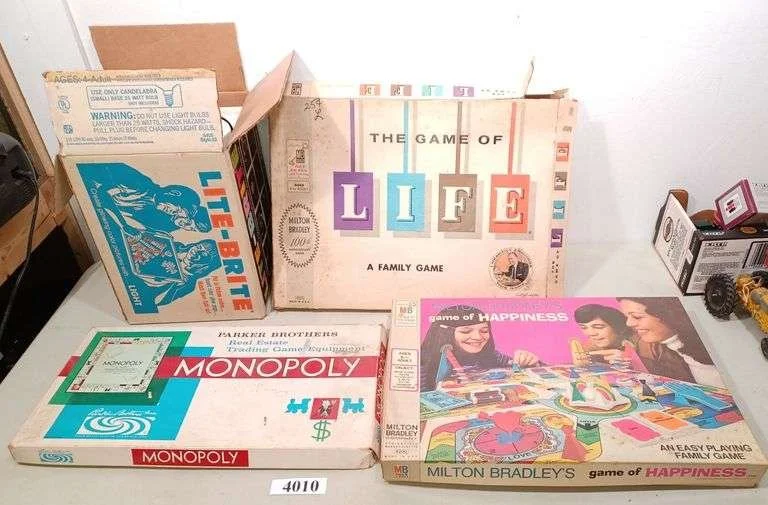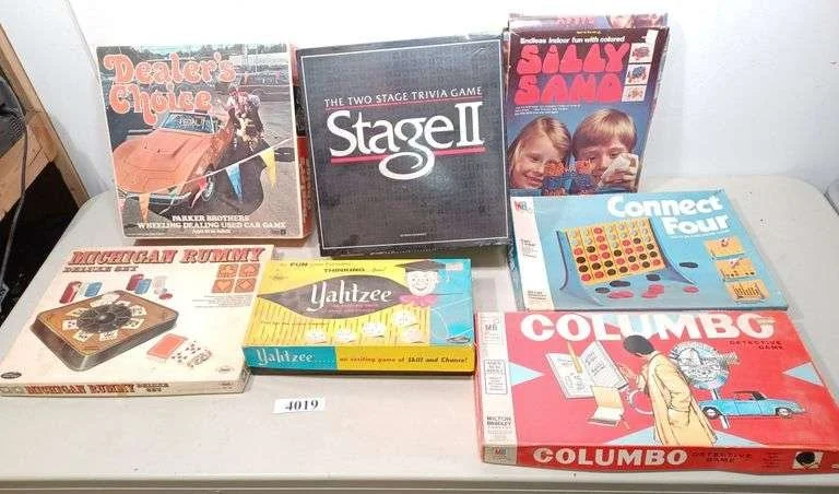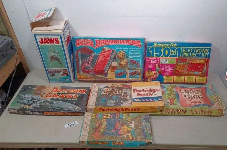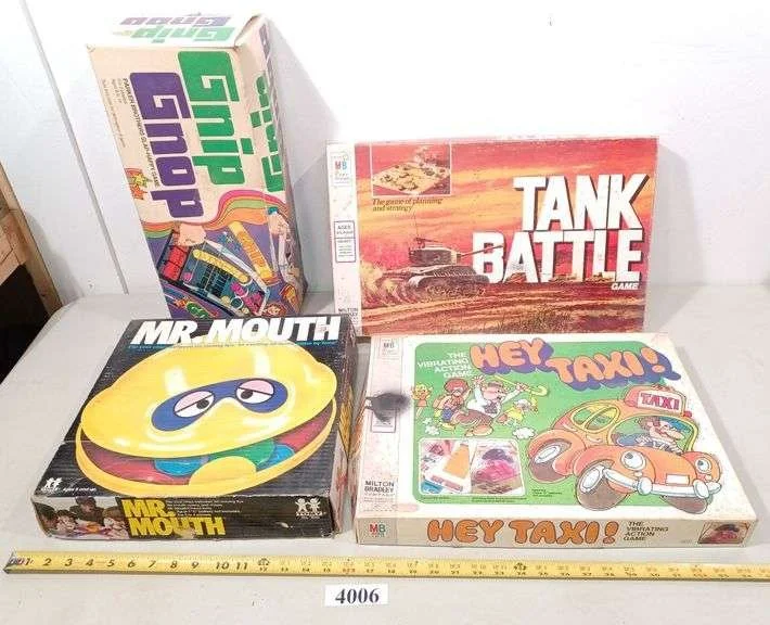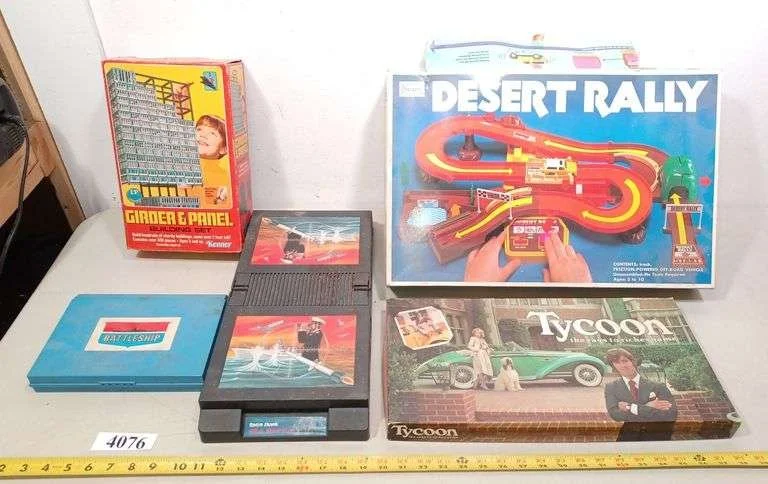 4076 Board games, Sears desert rally set, Radio Shack sea battle, girder and panel building set, Etc