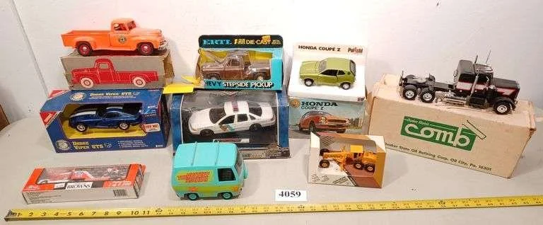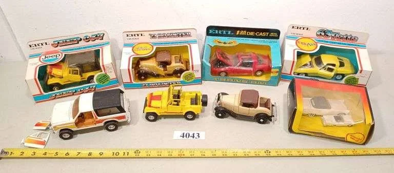 4043 ERTL and other diecast cars and trucks, some in packaging
