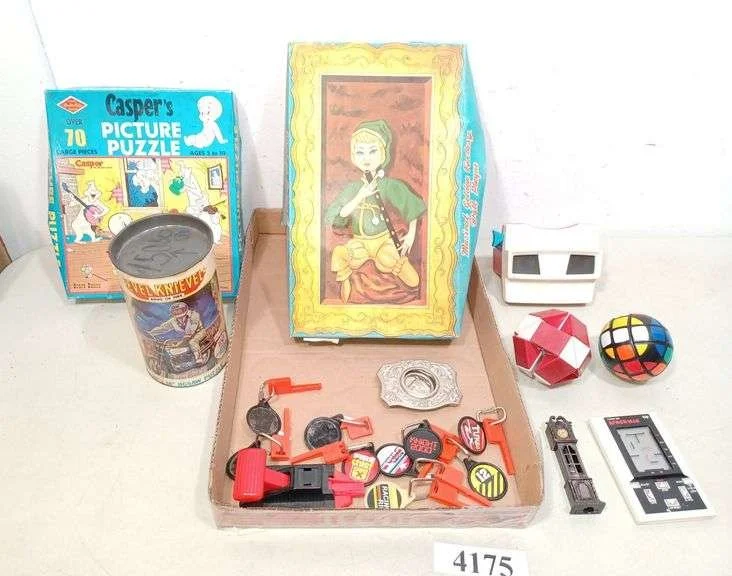 4175 Puzzles, clock pencil sharpener, View-Master viewer, Etc