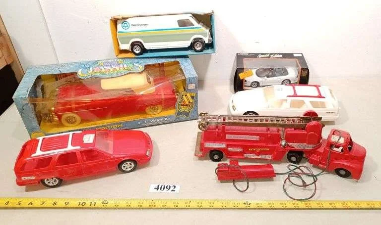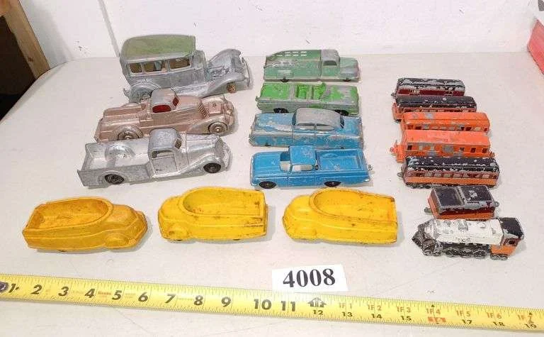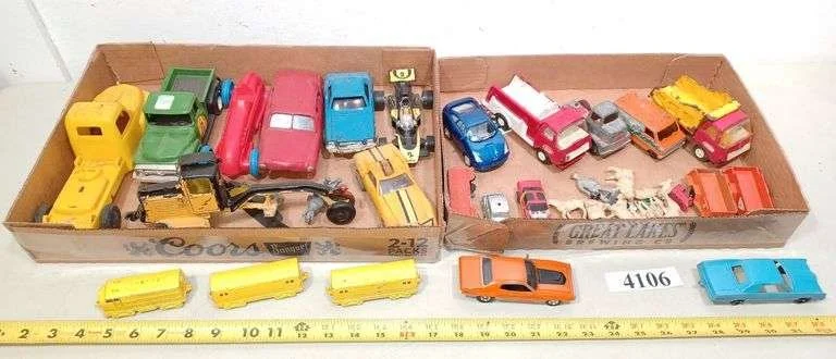 4106 Vintage metal and plastic cars, trucks, and train, etc