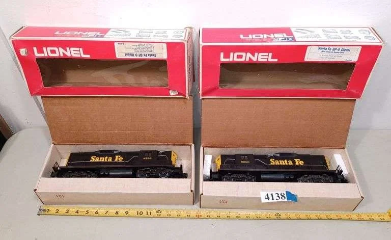 4138 Lionel 8250 Santa Fe GP-9 Diesel locomotive and 8255 Santa Fe GP-9 Diesel locomotive dummy in boxes