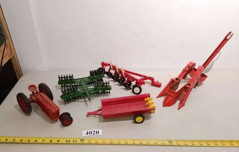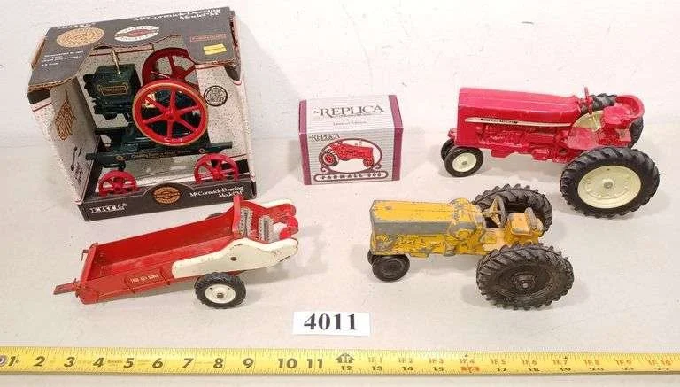 4011 Vintage toy tractors and implement, diecast McCormick Deering model M in package, Etc