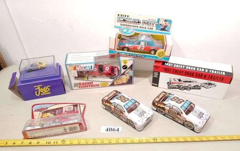 4064 Diecast race cars, remote control race car, race car tins, Etc