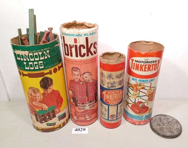 4029 Lincoln logs, Tinker toys, American Plastic bricks