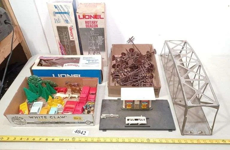 4042 Lionel floodlight tower, rotary beacon, illuminated Freight station platform, train trestle, other scenery Etc