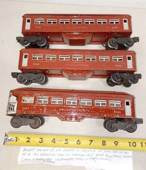4128 (2) 2442 Pullman and (1) 6443 Observation metal Lionel train cars