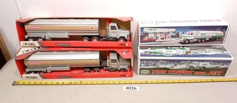4026 (2) Ertel Conoco tanker semis in box, (2) Hess trucks in boxes