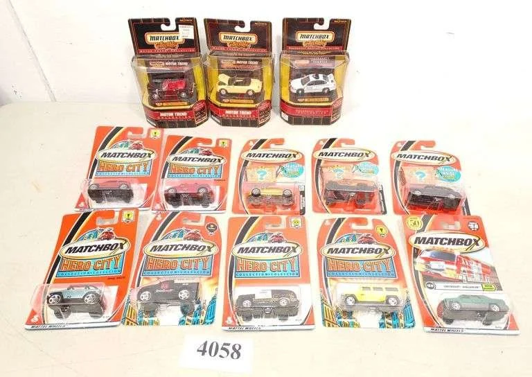 4118 Matchbox, hot wheels, and other diecast cars and trucks in packaging