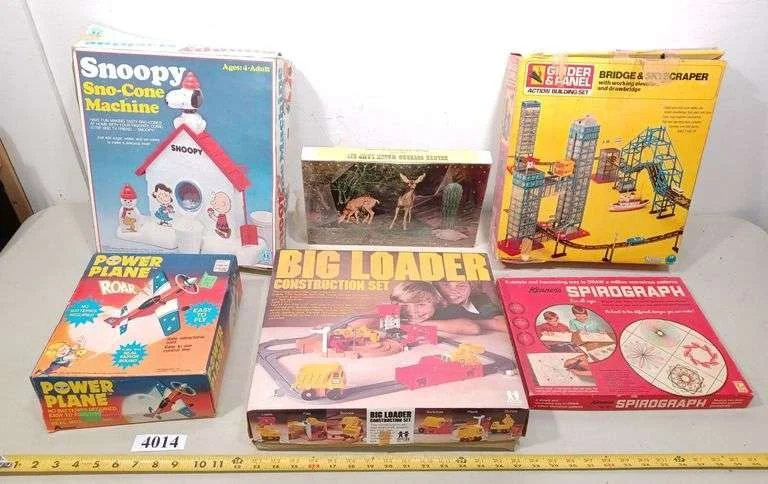 4014 Big loader construction set, Snoopy snow cone machine, Building set, Spirograph, other toys