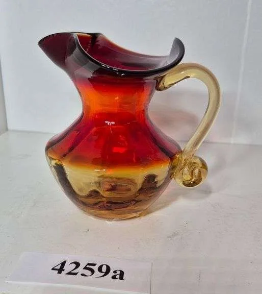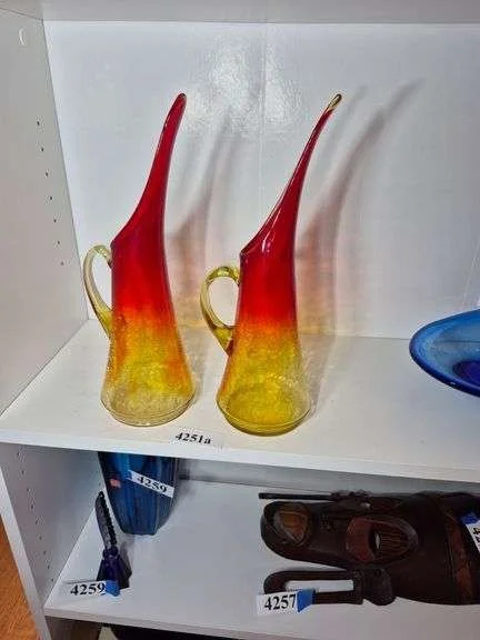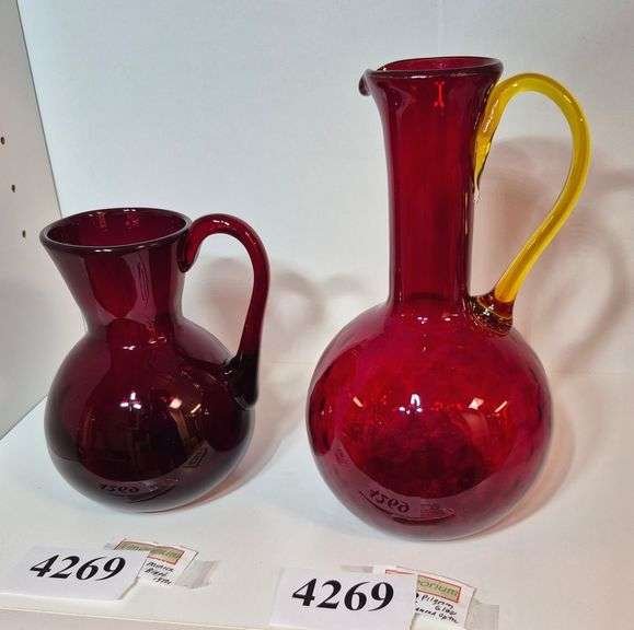 4269 Two mid-century red art glass pitchers