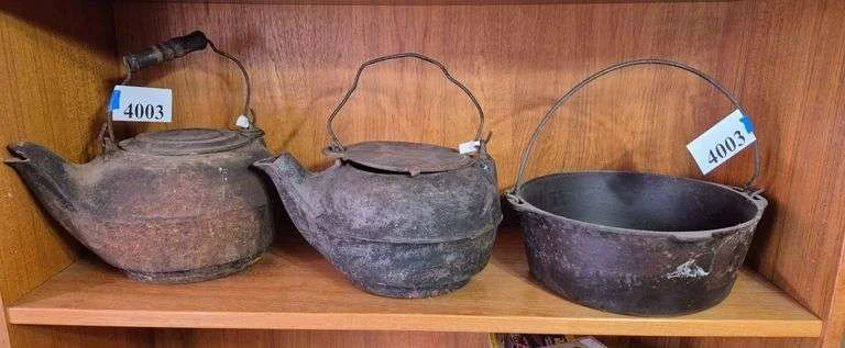 4003 Cast iron kettles and pan