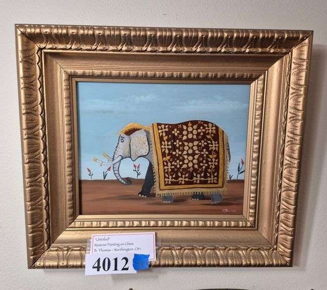 4012 Framed artist signed elephant reverse painting on glass