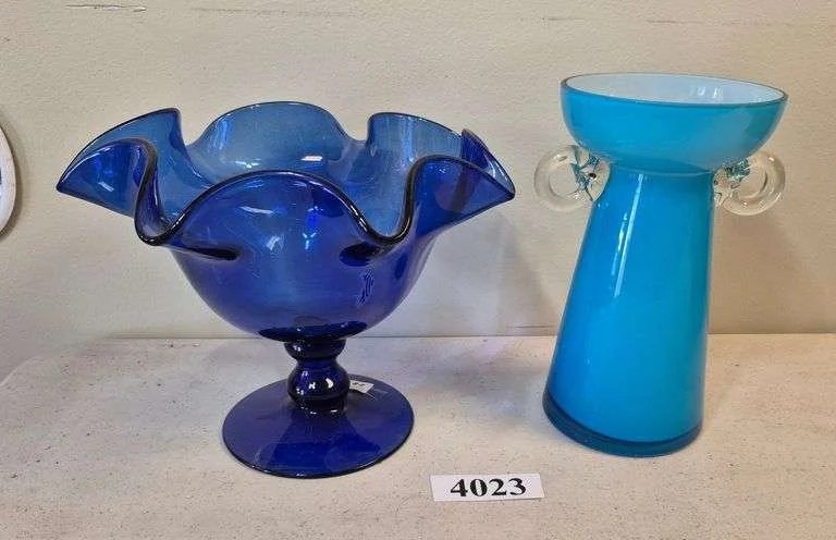 4023 Two blue glass vases