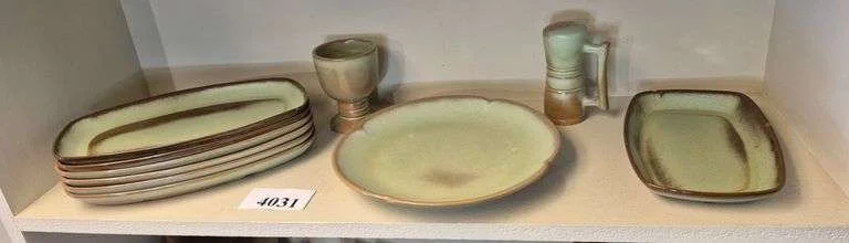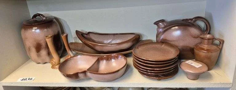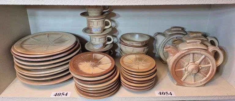 4054 Shelf full of Frankoma Wagon Wheel pottery