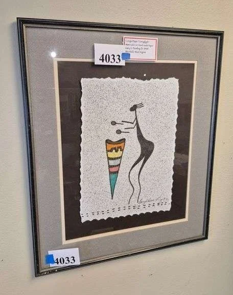 4033 Framed artist signed conga player painting on handmade paper