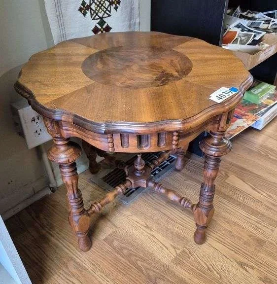 4039 Vintage side table with booked veneer top