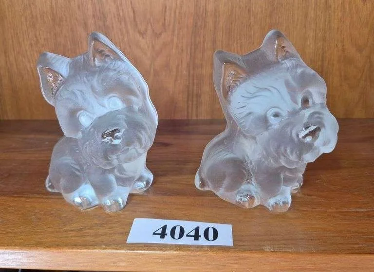 4040 Pair of Viking frosted glass dog bookends